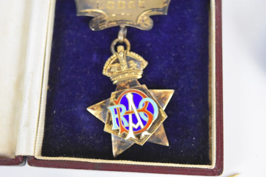 Collection of RAOB coins / jewels including hallmarked examples, together with Queen Victoria Silver Jubilee brooch in fitted box, etc