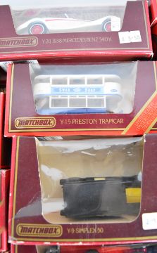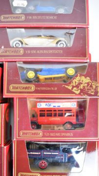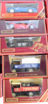 Fifty Matchbox Models of Yesteryear diecast classic cars and trucks to include Y-14 1935 ERA  RIB, Y-16 1928 Mercedes Benz SS, Y-19 1936 Auburn Speedster, Y-20 1938 Mercedes Benz 540K and limited edition code 3 customised vehicles, all in original boxes.
