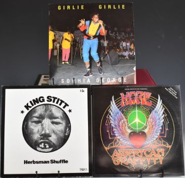 Nine mainly Reggae / Dub and Soul LPs comprising Fantasy Shift Here and Now, The Trojan Story, Aswad Live & Direct, Grace Jones Living My Life, Courtney Pine, Al Jarreau, Tina Turner, American Graffiti and Ladysmith Black Mambozo Shaka Zulu, together with six Reggae / Dub 12" singles including King Stitt Herbsman Shuffle and Girlie Girlie, Level 42 (10"), Black Box, Chaka Khan and Grandmaster Melee, records and covers generally appear VG+ to Ex