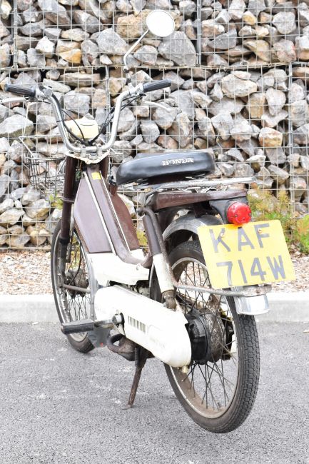 1981 Honda PA50 50cc pedal start moped registration number KAF 714W, with V5c. Last MOT expired 09/05/2020 but now exempt and has been used by the vendor recently. Odometer currently records 2750 miles. 10% + VAT buyer's premium on this lot