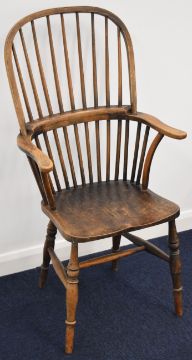 19thC elm seated Windsor armchair, height 110cm
