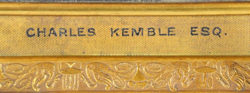 Georgian portrait miniature on ivory of Charles Kemble (Welsh actor 1775-1854), 10.5 x 8.5cm, in gilt metal frame marked with details of sitter to lower front edge and verso, with convex glass, with ivory licence
