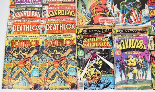 Eighty-four Bronze Age Marvel comics comprising titles Guardians of the Galaxy, John Carter Warlord of Mars, Deathlok the Demolisher, Logans Run and Battlestar Galactica, includes unbroken runs and multiple number 1 issues.