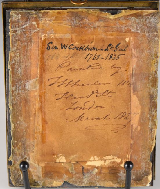 Wheeler portrait miniature on ivory of Lieutenant General Sir William Cockburn (1769-1835), of Bath and military interest, 10 x 8 cm, in gilt metal frame with details verso
