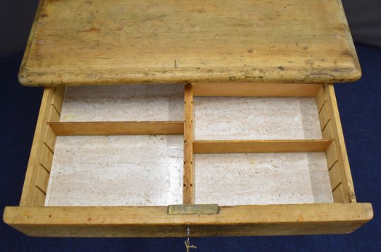 London and North Western Railway Co 19thC pine ticket office Wellington chest of seven straight drawers with brass campaign handles, carved 'L and NWR Co' and printed 'D Peter, Cilycwm' verso, with key, W61 x D60 x H84cm