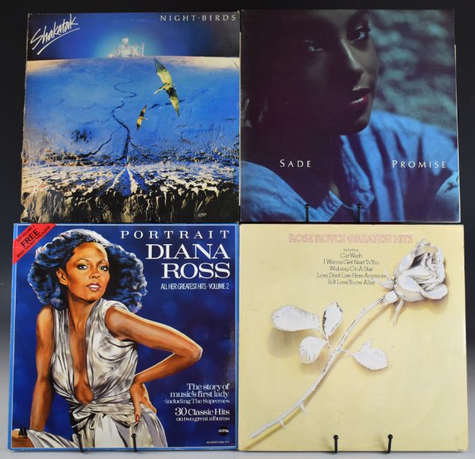 Thirty four Soul, Funk and Dance LPs including Sly & The Family Stone, Gloria Gaynor, View From The Hill, Esther Ofarim, Rose Royce, Diana Ross, Sade, Shakatak, Jackson 5, Hues Corporation, Hot Chocolate, Level 42, Stylistics, Gladys Knight, Kelly Marie, Joan Armatrading, George Benson, Randy Crawford, Tracy Chapman, Jacksons, Janet Jackson, Dionne Warwick, Barry White etc