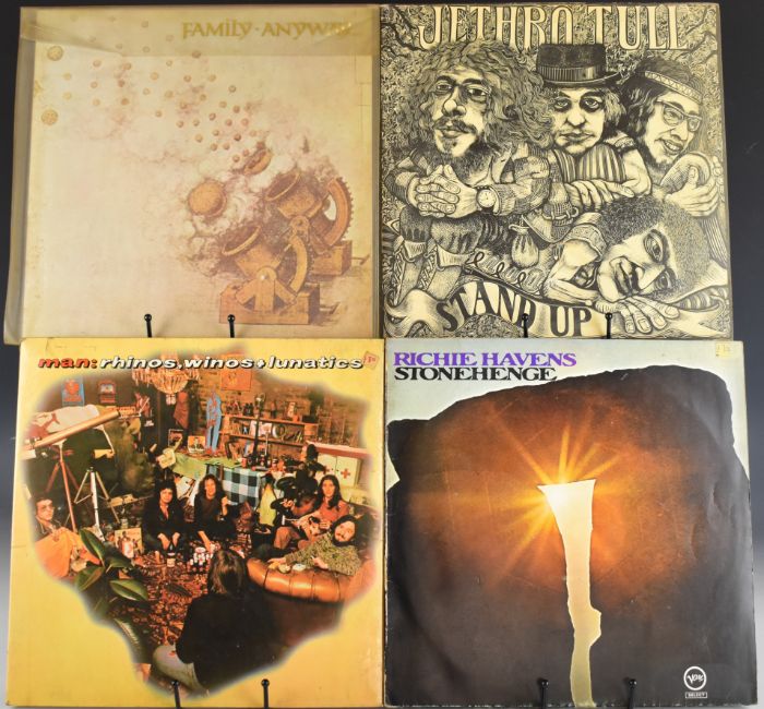 Thirty three Prog Rock and Rock LPs comprising Pink Floyd Dark Side Of The Moon second issue with poster, record appears VG+, Affinity UK issue on Vertigo (6360004), Family Entertainment (Reprise 6340) Carol Grimes Fools Meeting (B&C 11023), Bridget St John Ask Me No Questions (Dandelion 563750), The Peanut Butter Conspiracy The Great Conspiracy (CBS 63277), Richie Havens Stonehenge (Verve 2317-004), Man Rhinos Winos and Lunatics (UAG 29631), Wishbone Ash (MCA pink/red 2014), Taste (Polydor 583042), Atomic Rooster (B&CCAS -1026), It's A Beautiful Day (CBS 563722), Jefferson Airplane Volunteers (RCA Victor SF8076) Quintessence In Blissful Company (Island pink label ILPS - 9110Q), Spooky Tooth Spooky Two (Island pink label ILPS-9098), Street Walkers, Babe Ruth, Supertramp, Jethro Tull This Was (Island pink ILP 985) and Stand Up (Island pink AILPS 9103) with pop up gatefold, Family Anyway, The Doors Waiting For The Sun (Elektra 74024), Yes Fragile (Atlantic red/plum label 2401019) gatefold sleeve, Cream Disraeli Gears (Reaction 593003) and Wheels of Fire (Polydor 582032, Free Tons Of Sobs (Island pink ILPS 9089) and Fire & Water (Island pink label ILPS-9120), Fairport Convention Unhalfbricking (Island pink label 9102), The Who Who's Next (Track), Steamhammer Mountains (B&C CAS-1024) etc, records generally appear VG to VG+