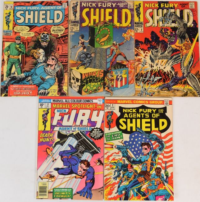 Five Nick Fury Agent of Shield comics by Marvel to include issue #1.