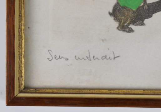 Boris O'Klein set of six signed and titled humorous dirty dogs of Paris prints, each 20.5 x 47cm, in part gilt frames