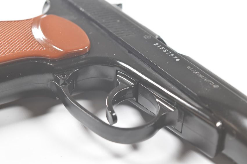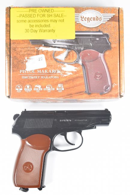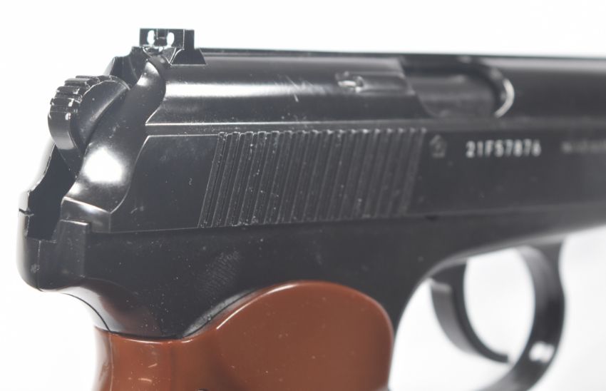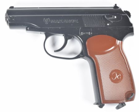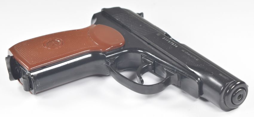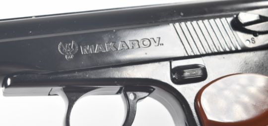 Umarex The Spirit of Legends Makarov .177 CO2 air pistol with chequered faux wood grips and fixed sights, serial number 21F57876, in original box with instruction manual.  PLEASE NOTE:- Before bidding please ensure that you are fully aware of any law regarding ownership and of any limitations on shipping of this item
