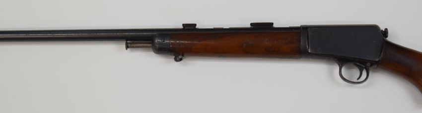 Winchester Model 63 .22 semi-automatic rifle with scope rails, sling mounts, semi-pistol grip, sound moderator and 29.5 inch barrel, overall length 115.5cm, serial number 21518A. PLEASE NOTE THAT A VALID RELEVANT FIREARMS/SHOTGUN CERTIFICATE IS REQUIRED TO HANDLE/PURCHASE THIS ITEM.