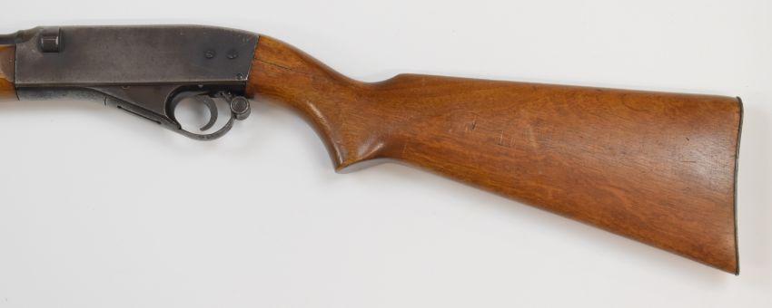 BSA Ralock .22 semi-automatic quick take down rifle with tube magazine to the butt loaded through the side of the stock, adjustable sights, semi-pistol grip, trigger guard underlever that holds spent cases and 24 inch barrel, overall length 110cm, serial number T12192. PLEASE NOTE THAT A VALID RELEVANT FIREARMS/SHOTGUN CERTIFICATE IS REQUIRED TO HANDLE/PURCHASE THIS ITEM.