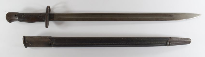 British WW1 1907 pattern Wilkinson bayonet with good stamps to ricasso, a 43.5cm fullered blade and scabbard PLEASE NOTE:- Before bidding please ensure that you are fully aware of any law regarding ownership and of any limitations on shipping of this item