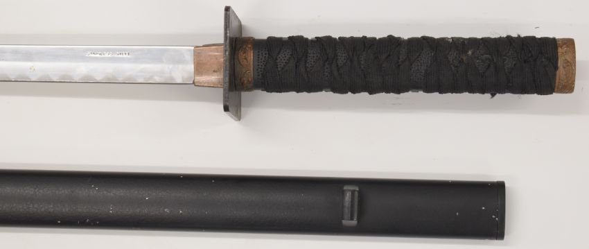 Modern Samurai sword with bound grip, 63cm blade and scabbard PLEASE NOTE:- Before bidding please ensure that you are fully aware of any law regarding ownership and of any limitations on shipping of this item