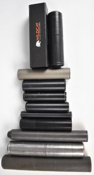 Ten rifle and air rifle sound moderators including .25, .308, A-Tec, SAK etc, one in Wildcat box.