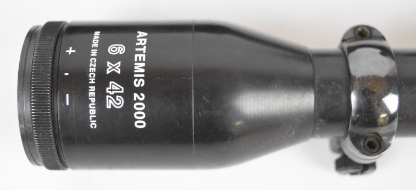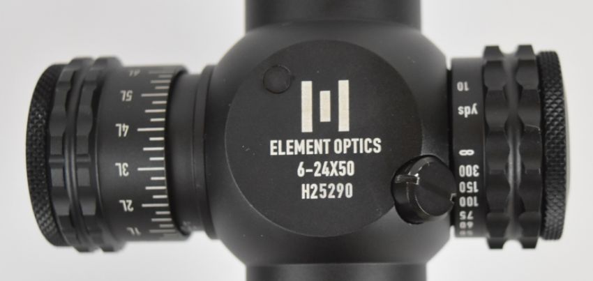 Two rifle scopes Element Helix 6-24x50 with lens covers and Artemis 2000 6x42.