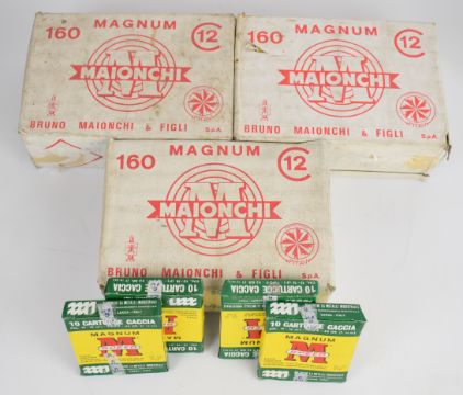Five hundred and twenty 12 bore Maionchi 3" Magnum 52g 6 shot cartridges, all sealed in original boxes. PLEASE NOTE THAT A VALID RELEVANT FIREARMS/SHOTGUN CERTIFICATE IS REQUIRED TO HANDLE/PURCHASE THIS ITEM. We are not able to offer our usual postage service for this lot