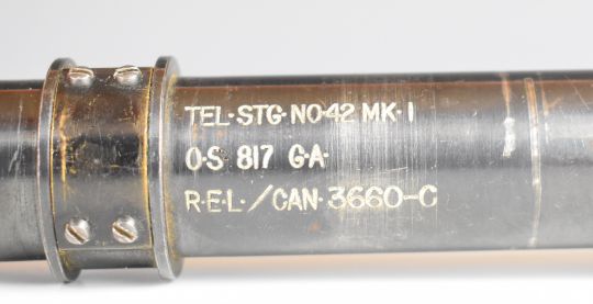 WW2 No. 42 Mk I scope stamped 'Tel Stg No 42 MK.I OS 817 GA REL/CAN 3660-C', 28.5cm long.
