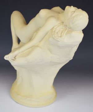 Ceramic figure of a shackled reclining nude with impressed 'NTHP, 1990' to base, height 39cm