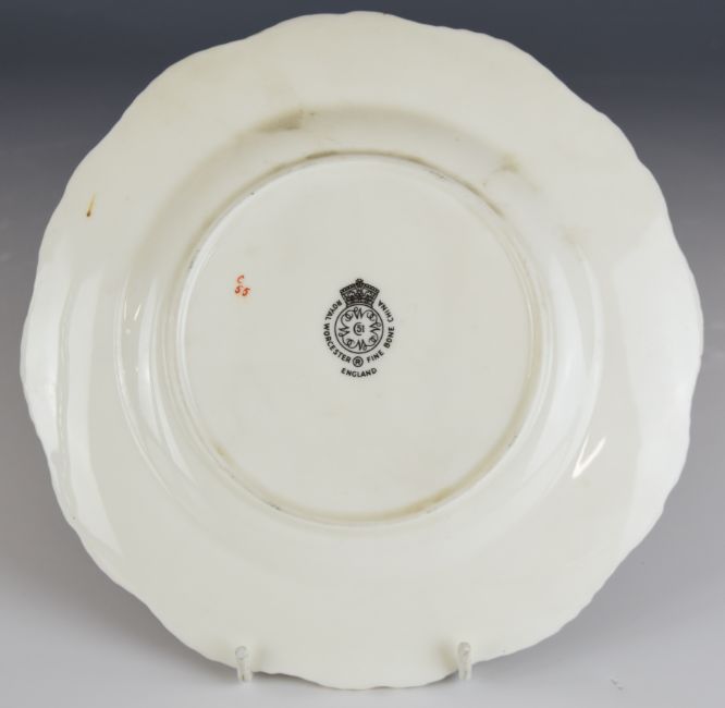 Royal Worcester peaches and grapes painted fruit plate with gilded rim and signed Sibley - Lewis, diameter 20.5cm