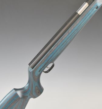 Weihrauch HW97K .177 underlever air rifle with blue laminated show wood stock, semi-pistol grip, raised cheek piece and adjustable trigger, serial number 2379932, with original tag.  PLEASE NOTE:- Before bidding please ensure that you are fully aware of any law regarding ownership and of any limitations on shipping of this item