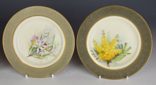Royal Worcester four cabinet plates from the 'Mrs Ellis Rowan Australian Flowers' series, made for the Australian market, including Acacia and Banksia, diameter 15.2cm