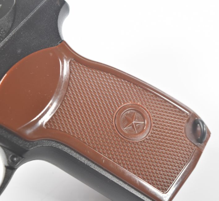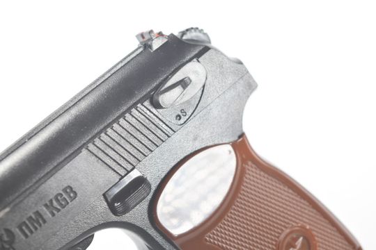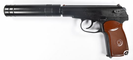 Umarex The Spirit of Legends NM KGB .177 CO2 air pistol with chequered grips and sound moderator, serial number 21H255165, in original box with instruction manual.  PLEASE NOTE:- Before bidding please ensure that you are fully aware of any law regarding ownership and of any limitations on shipping of this item