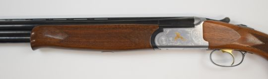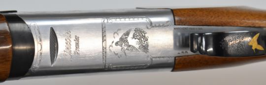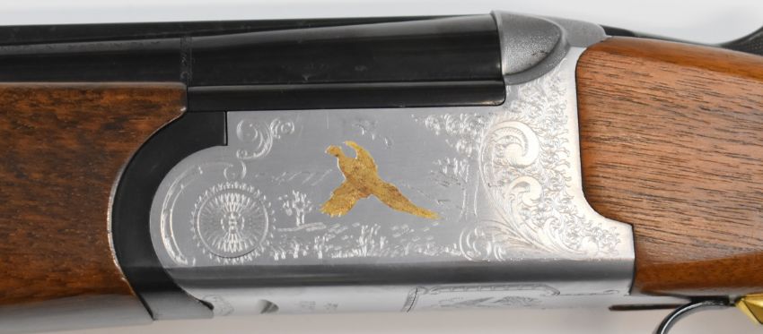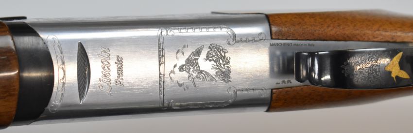 Lincoln Premier 12 bore over and under ejector shotgun with gold decoration of birds to the locks and trigger guard, engraved lock, thumb lever, top plate and underside, chequered semi-pistol grip and forend, single trigger, vented top rib and 30 inch multi-choke barrels, overall length 121cm, length of pull 37cm, serial number 248850.  PLEASE NOTE THAT A VALID RELEVANT FIREARMS/SHOTGUN CERTIFICATE IS REQUIRED TO HANDLE/PURCHASE THIS ITEM.