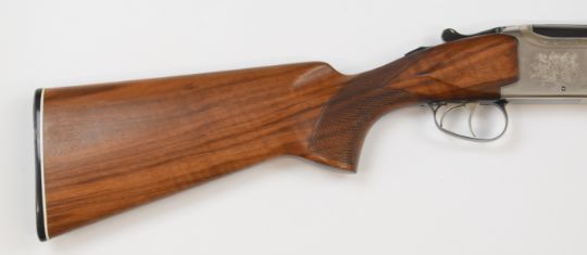 Laurona 12 bore over and under ejector shotgun with engraved lock, underside and thumb lever, chequered semi-pistol grip and forend, double trigger, vented top rib and 28 inch barrels choked ¼ and ½, overall length 114cm, length of pull 37.5cm, serial number 229683. PLEASE NOTE THAT A VALID RELEVANT FIREARMS/SHOTGUN CERTIFICATE IS REQUIRED TO HANDLE/PURCHASE THIS ITEM.