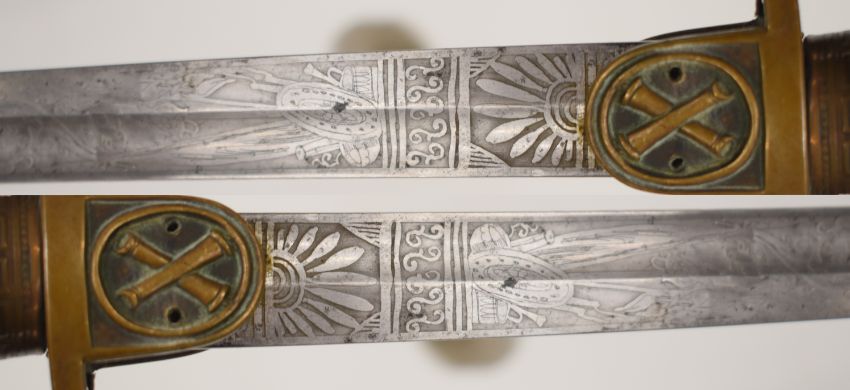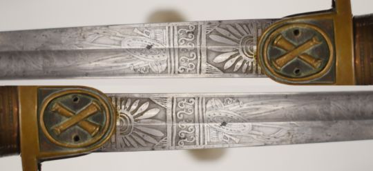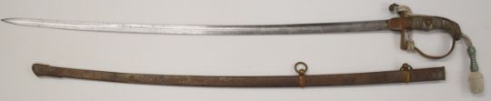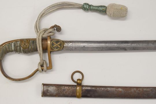 Imperial German Artillery Officer's sword with crossed cannon to langet, part decorated 83cm blade marked Berlin to spine, scabbard and knot  PLEASE NOTE:- Before bidding please ensure that you are fully aware of any law regarding ownership and of any limitations on shipping of this item