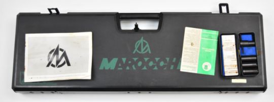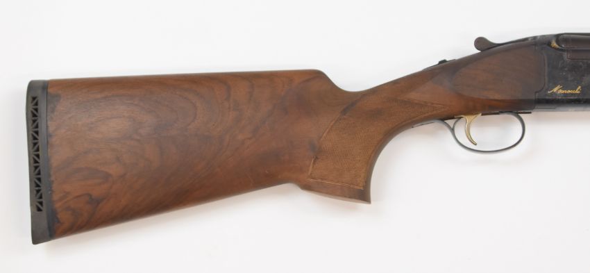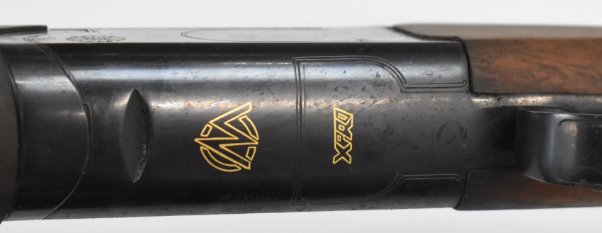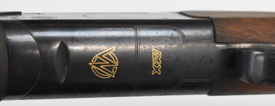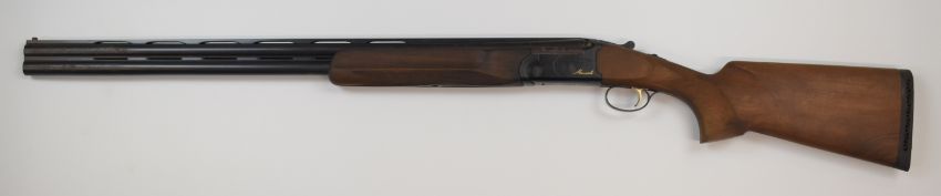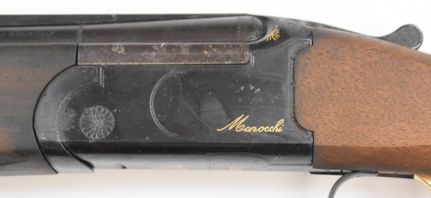 Marocchi XPro 12 bore over and under ejector shotgun with gold named lock and underside, chequered semi-pistol grip and forend, single trigger, vented top and central ribs and 30 inch multi-choke barrels, overall length 120.5cm, length of pull 36.5cm, serial number 160586, in original box with three additional chokes and choke key. PLEASE NOTE THAT A VALID RELEVANT FIREARMS/SHOTGUN CERTIFICATE IS REQUIRED TO HANDLE/PURCHASE THIS ITEM.