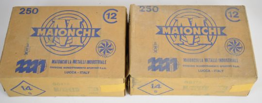 Five hundred 12 bore Maionchi M-Speed 36g nickel plated 4 shot cartridges, all sealed in original boxes. PLEASE NOTE THAT A VALID RELEVANT FIREARMS/SHOTGUN CERTIFICATE IS REQUIRED TO HANDLE/PURCHASE THIS ITEM. We are not able to offer our usual postage service for this lot