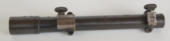 WW2 MHR Co M45 sniper rifle scope marked 'Telescope M45 No 1294 M.H.R. Co 1943 - RJD' with Parker-Hale mounts, 22.5cm long.
