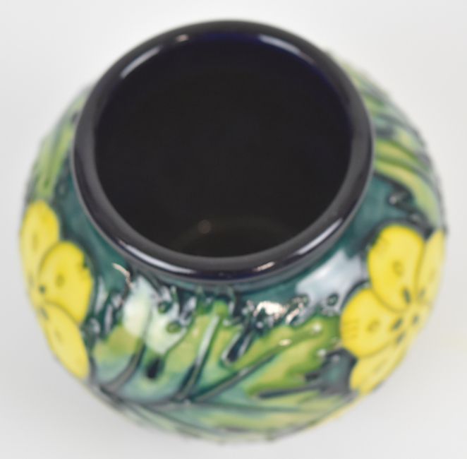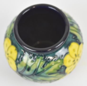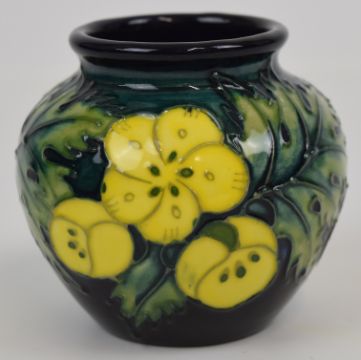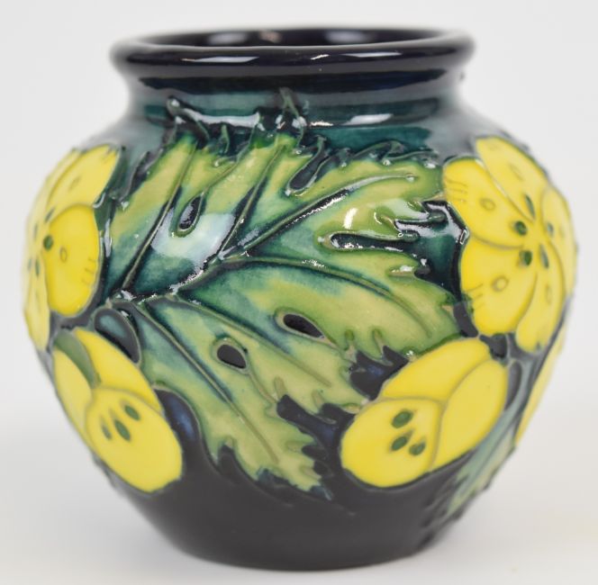 Moorcroft pedestal vase decorated in the Buttercup pattern, in original box, height 7.5cm
