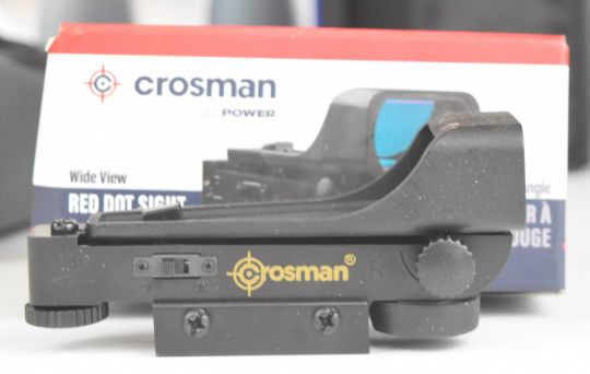 A pair of Milbro Clearview 10-30x60 zoom binoculars and a Crosman Air Power wide view red dot sight, both in original boxes.