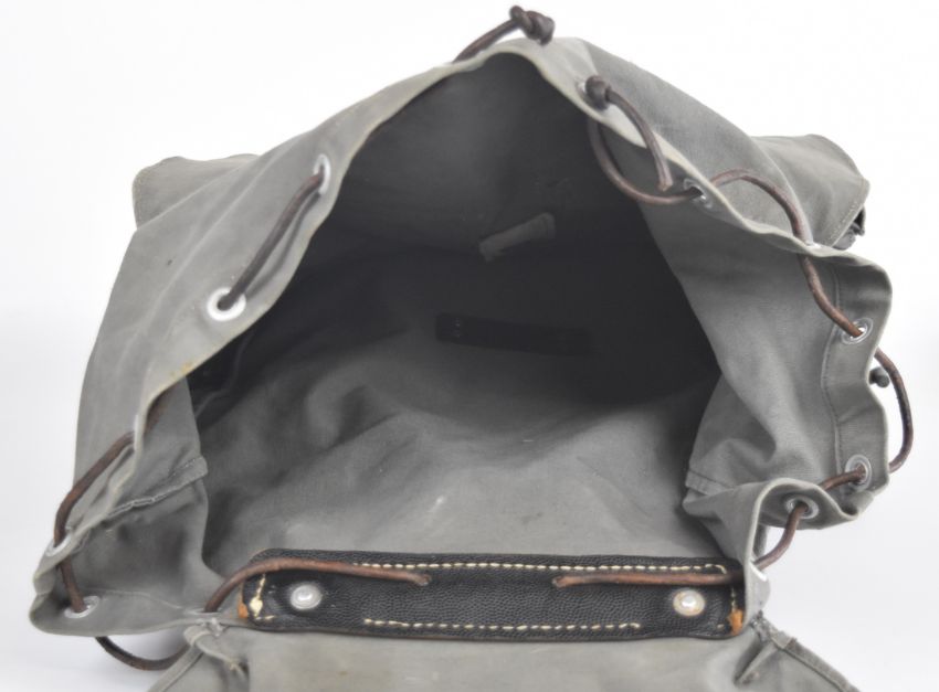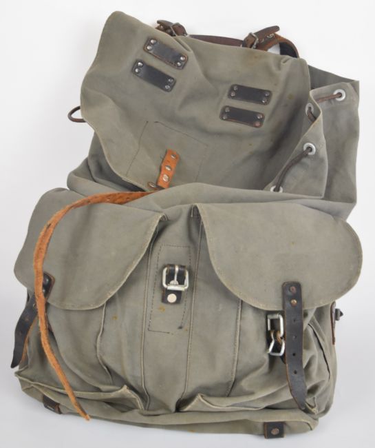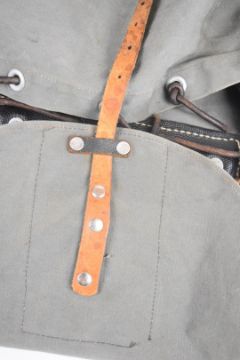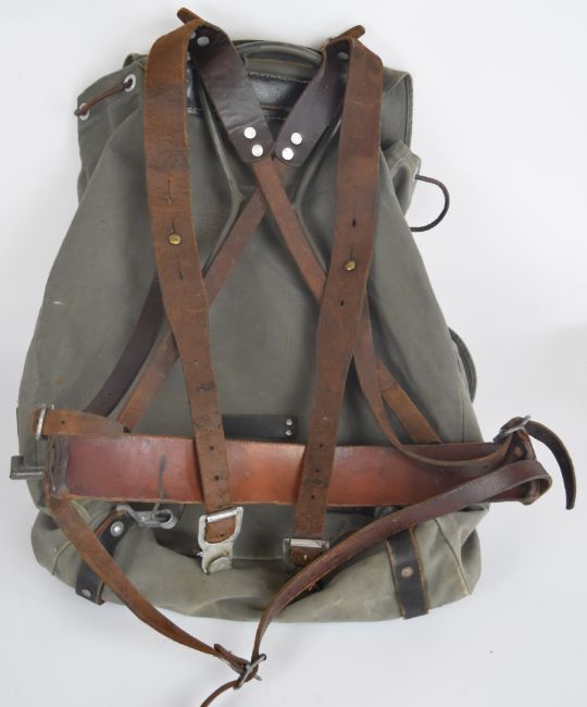 Swedish bergen of canvas construction with leather strapping and alloy buckles