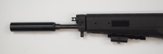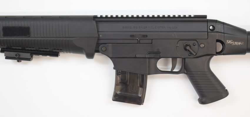 Sig Sauer 522 .22 semi-automatic assault style rifle with textured pistol grip, tactical stock, multi-shot magazines, scope rail, sound moderator and 21 inch barrel, overall length 101cm, serial number XA018011. PLEASE NOTE THAT A VALID RELEVANT FIREARMS/SHOTGUN CERTIFICATE IS REQUIRED TO HANDLE/PURCHASE THIS ITEM.