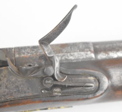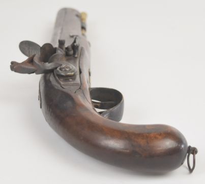 Henry Nock of London flintlock holster pistol with named lock, engraved hammer, brass trigger guard and ram-rod and 9 inch part-octagonal smooth bored barrel, overall length 38cm.