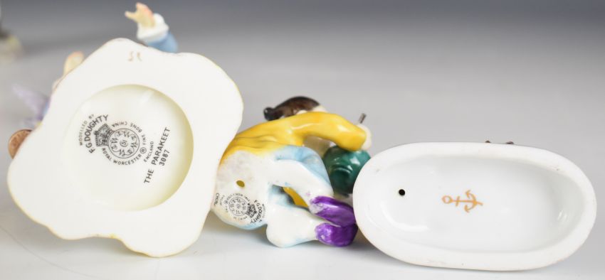 Royal Worcester and Royal Crown Derby paperweights, figures, cruet and miniature teapot, tallest 16cm