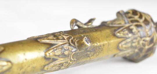 Brunei or similar eastern desk cannon with relief decoration and flared muzzle, 22cm long.