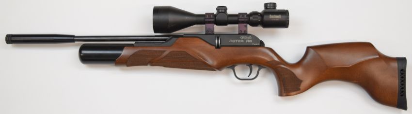 Walther Rotex R8 .22 FAC PCP air rifle with chequered semi-pistol grip and forend, raised cheek piece, adjustable trigger, 8-shot magazine and sound moderator, serial number R0001482, with filling adaptor. PLEASE NOTE THAT A VALID RELEVANT FIREARMS/SHOTGUN CERTIFICATE IS REQUIRED TO HANDLE/PURCHASE THIS ITEM.
