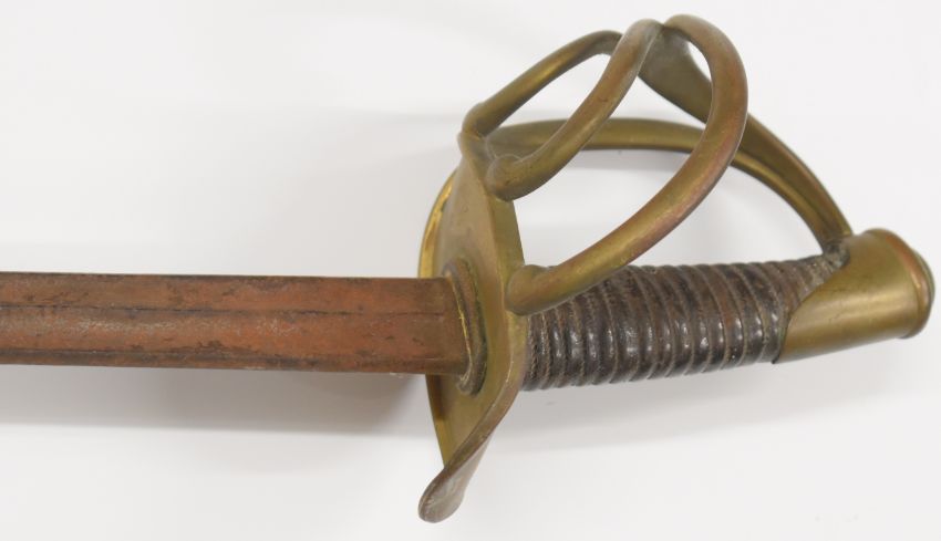 French early 19thC pattern Heavy Cavalry sword with four bar hilt stamped 4681864 and 98cm blade PLEASE NOTE:- Before bidding please ensure that you are fully aware of any law regarding ownership and of any limitations on shipping of this item