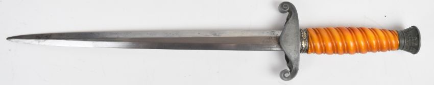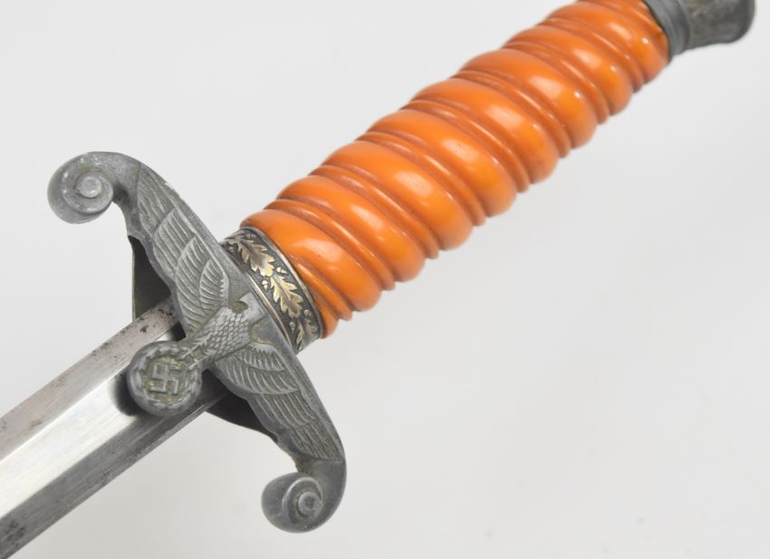 WW2 German Nazi Third Reich dagger with composite grip, WKC Solingen and maker's mark to ricasso, 25cm double edged blade and scabbard PLEASE NOTE:- Before bidding please ensure that you are fully aware of any law regarding ownership and of any limitations on shipping of this item