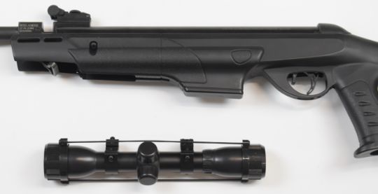 Crosman Multi-Shot Diamondback Model 6-CMD2SXS .22 air rifle with composite stock, textured pistol grip, adjustable sights and scope, serial number 823X00960, in original box with instructions. PLEASE NOTE:- Before bidding please ensure that you are fully aware of any law regarding ownership and of any limitations on shipping of this item