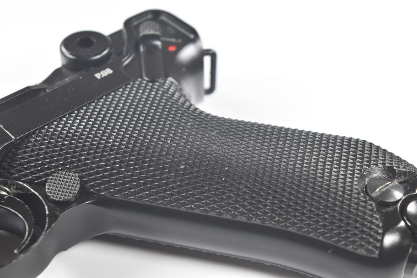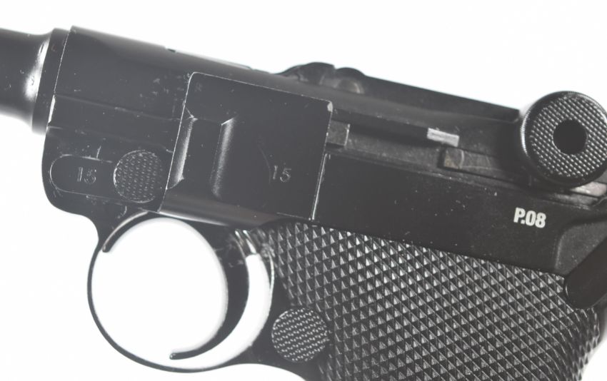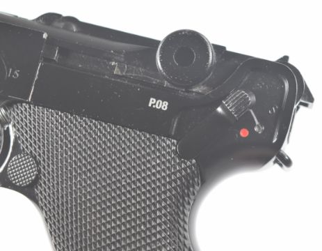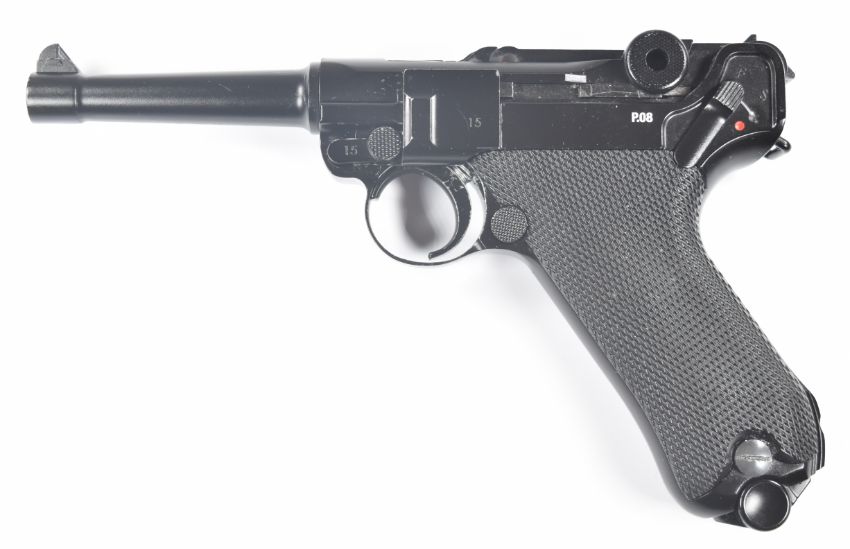 Umarex The Spirit of Legends P.08 Luger style .177 CO2 air pistol with chequered grips, serial number 19C07957, in original box with instruction manual.  PLEASE NOTE:- Before bidding please ensure that you are fully aware of any law regarding ownership and of any limitations on shipping of this item
