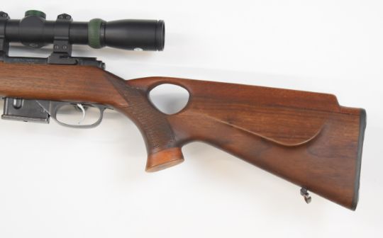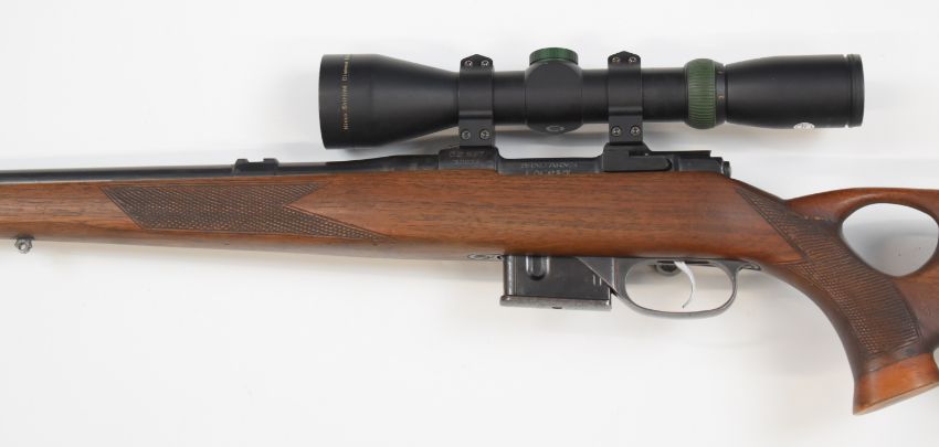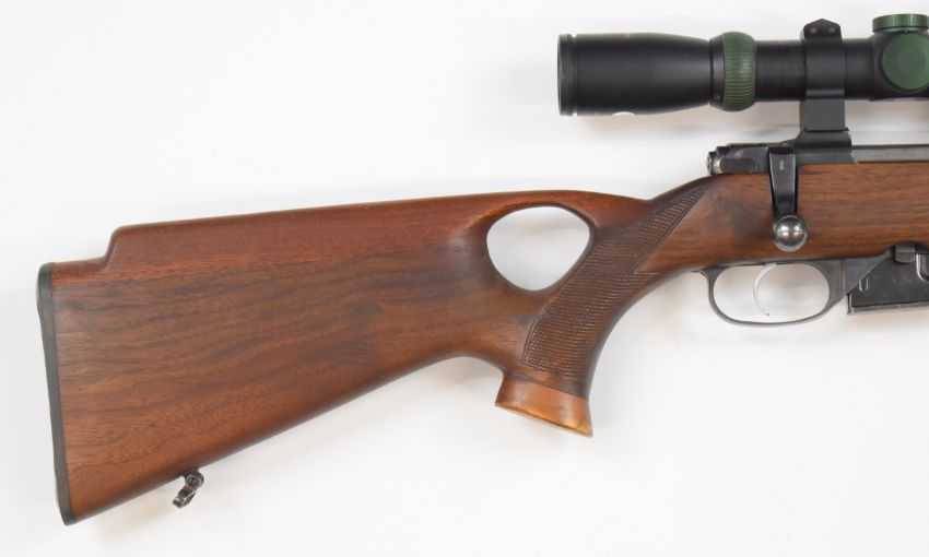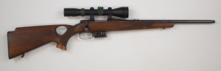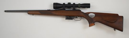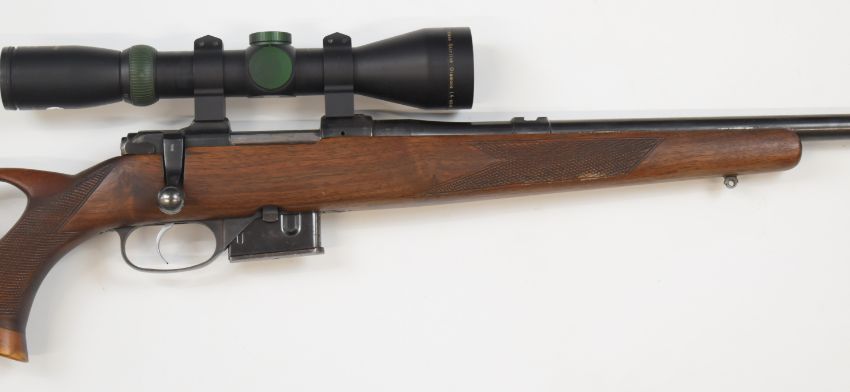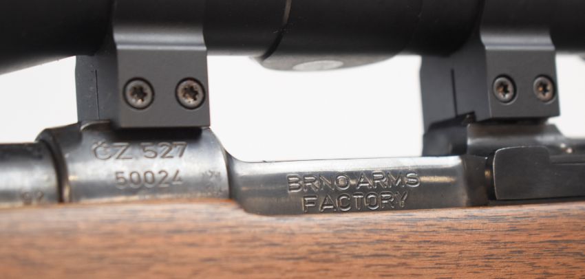 BRNO 527 .222 bolt-action rifle with chequered semi-pistol grip and forend, raised cheek piece, sling mounts, extended magazine, Nikko Stirling Diamond 1.5-6x44 scope and 19.5 inch barrel, overall length 94.5cm, serial number 50024. PLEASE NOTE THAT A VALID RELEVANT FIREARMS/SHOTGUN CERTIFICATE IS REQUIRED TO HANDLE/PURCHASE THIS ITEM.