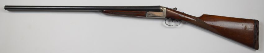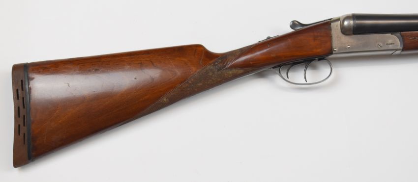 Master 12 bore side by side ejector shotgun with chequered grip and forend, double trigger and named 27.75 inch barrels choked ½ and ¾, overall length 114.5cm, length of pull 38cm, serial number 124453. PLEASE NOTE THAT A VALID RELEVANT FIREARMS/SHOTGUN CERTIFICATE IS REQUIRED TO HANDLE/PURCHASE THIS ITEM.