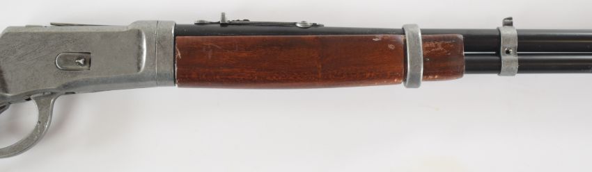Winchester style Model 73 replica underlever-action rifle with wooden stock and forend and 21 inch barrel, overall length 97cm.