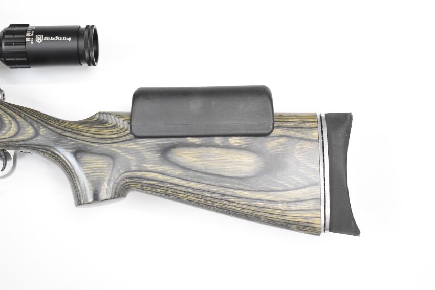Savage Model 12 .308 Win bolt-action rifle with laminated show wood stock, semi-pistol grip, Nikko Stirling Diamond LR10-40x56 scope and 30.5 inch barrel, overall length 128cm, serial number PLEASE NOTE THAT A VALID RELEVANT FIREARMS/SHOTGUN CERTIFICATE IS REQUIRED TO HANDLE/PURCHASE THIS ITEM.