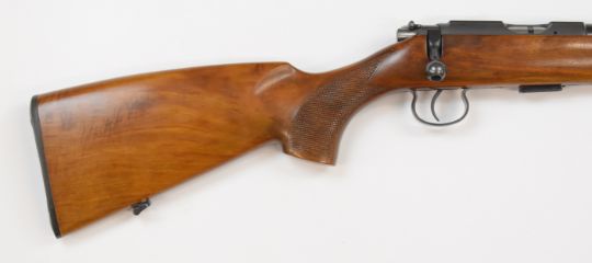 BRNO Model 2 .22 bolt-action rifle with chequered semi-pistol grip, multi-shot magazine, sling mounts, adjustable sights and 24.5 inch barrel, overall length 108.5cm, serial number 338165, with original paperwork. PLEASE NOTE THAT A VALID RELEVANT FIREARMS/SHOTGUN CERTIFICATE IS REQUIRED TO HANDLE/PURCHASE THIS ITEM.